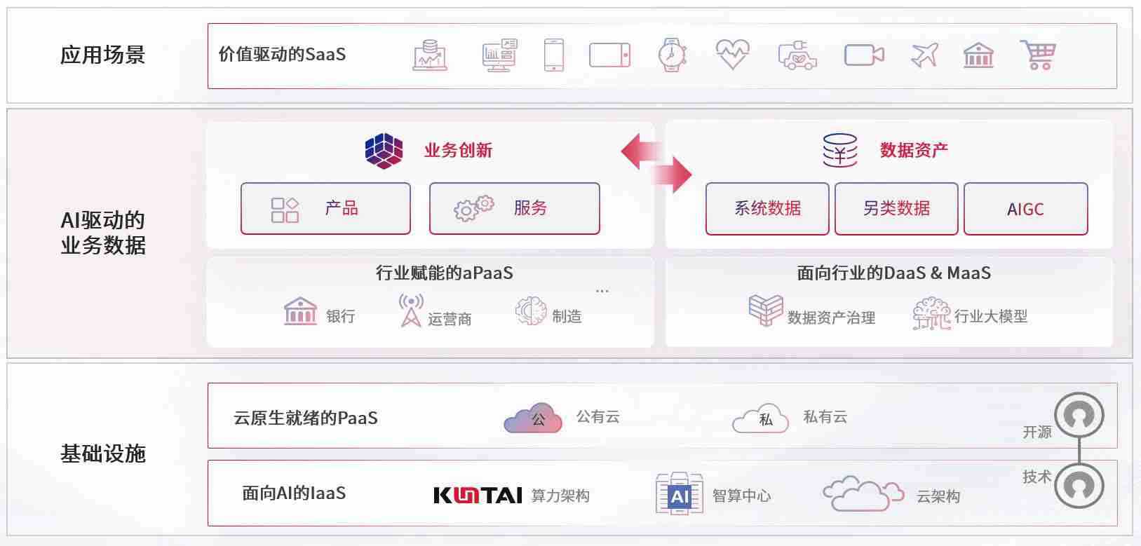 数字时代,,,,围绕企业数字化转型的关键要素,,,NO钱包数码开创性的提出数云融合战略和技术体系框架,,,,着力在云原生、、数字原生、、、AI原生和信创产业上架构产品和服务能力,,,,为处在不同数字化转型阶段的快消零售、、、汽车、、、、金融、、、、医疗、、、、政企、、、、教育、、运营商等行业客户提供泛在的敏捷IT能力和融合的数据驱动能力,,,构建跨界融合创新的数字业务场景和新业务模式,,助力企业级客户建立面向未来的核心能力和竞争优势,,,全面推动社会的数字化、、、、智能化转型升级。。